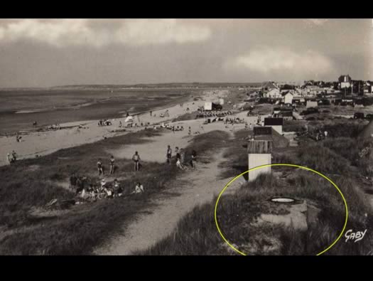 Wn18 beach defences with trenches on the edge of the beach and the R612 casemate behind.