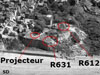 The Casino the modern building on the right with two round windows. Under and to its left (outlined in red) is a concrete wall that was designed to cover the access to a tunnel that went inland and up to behind the trees.