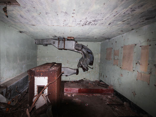 A crawler crane like the one that was used here. I was told they brought a crane on a lorry all the way down and along the track/roadway to the Scatter station, to remove it. Everything was removed.