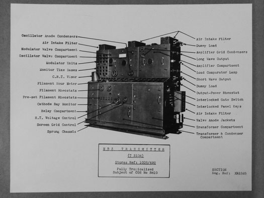 Chain Home receiver room photograph shows console (right) and RF8N Receiver (left).