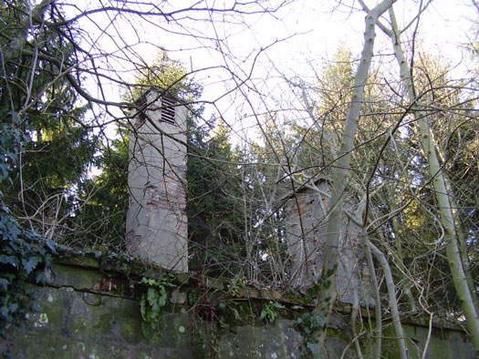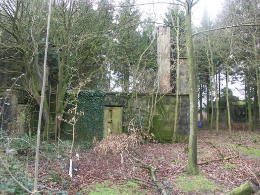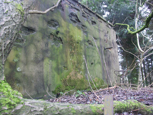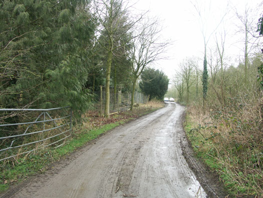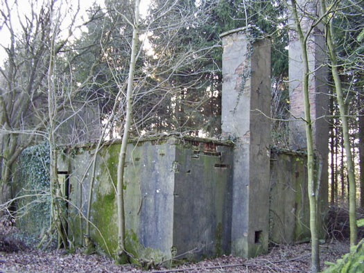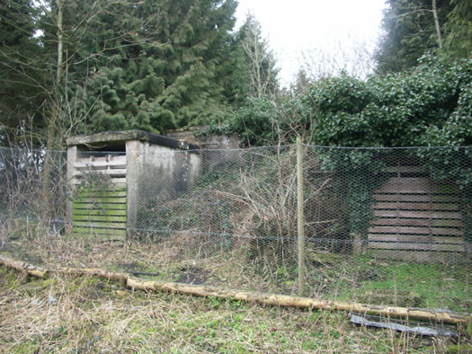 The entrance to the Communal site with the decontamination building on the left, now in trees.