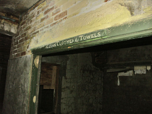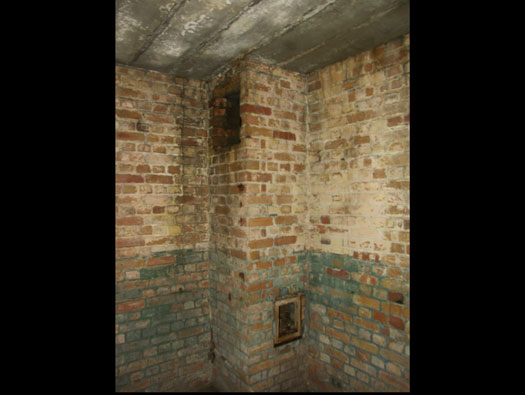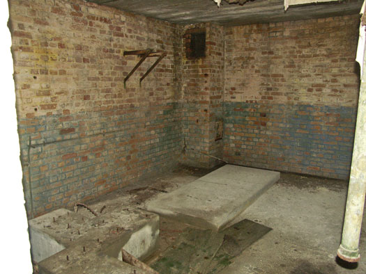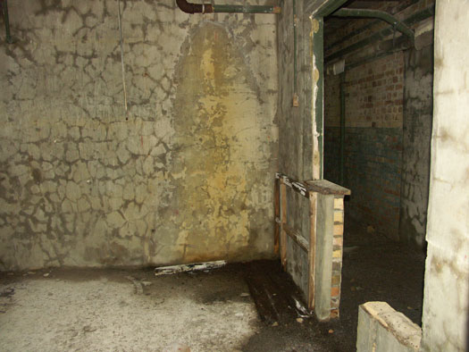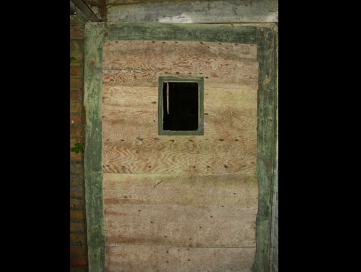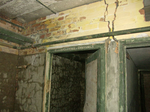 The entrance and undressing area for unwounded. The narrow window or 'Letter Box' was for all the waste clothing to be thrown out into bins for disposal.