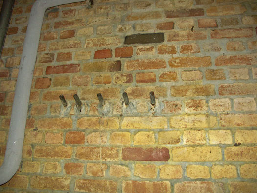 The walls were 13 1/2 inch thick and maybe this type of bond, a solid wall.
