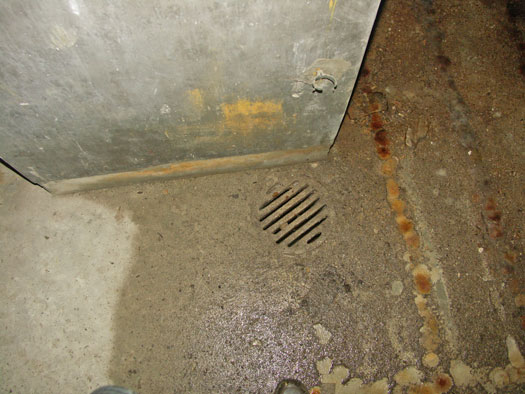 The hot water tank and lagged in Asbestos. With a very good door thrown down beside it. Here hot water would have been distributed around the building.
