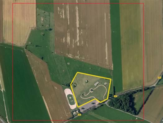 INFORMATION: This is the site today, inside the yellow lines is the museum and the rest is in open farm land.