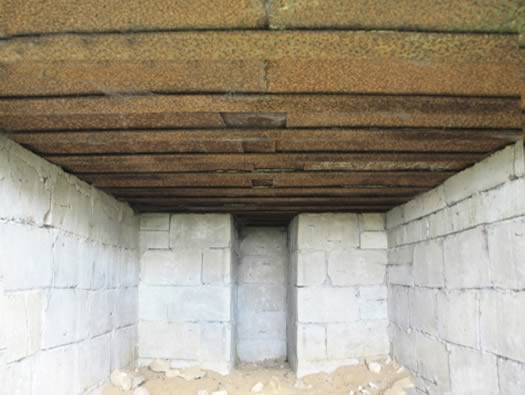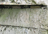 The slot in the end wall may be a recess to allow the barrel to fit in and so takes up less room. Above : A name scratched in the concrete.