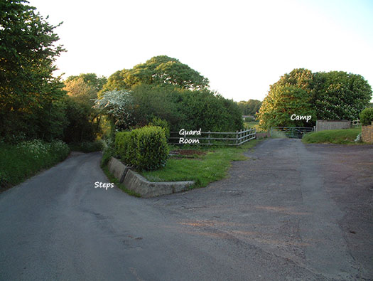 INFORMATION: In the centre was the guard room with steps leading from the road up the bank. The main camp is to the right. The guard room steps.