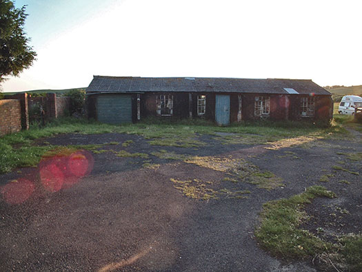 Across the road from the main gate is the parade square and HQ and on the left a brick walled fuel compound.