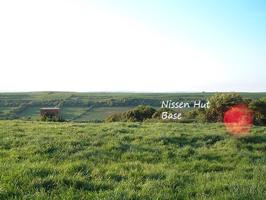 The two Nissen hut bases in the wood and the toilet on the left. These buildings on the hill had something to do with this aerial.