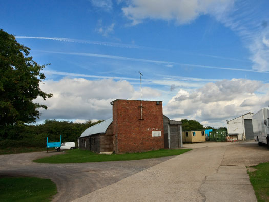 By 1942 full decontamination blocks were not needed and so these blocks were used to incorporate all three uses. Built with attached brick water tower. Above : painted on the brickwork is 292feet Above Mean Sea Level so the pilots would not forget.