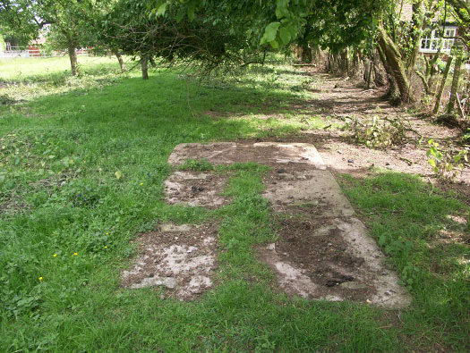 All that is left of an M&E plinth, the machinery mountings still sitting proud off the concrete base. Above : how it may have looked with its walls built around the base.