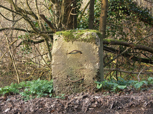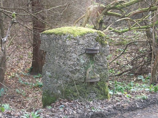 Two concrete blocks where a chain or cable strop would have connected the the blocks thus cutting off the road. The first soldiers may have been Home Guard and later a regular infantry unit would have taken over and much later the RAF Regiment.