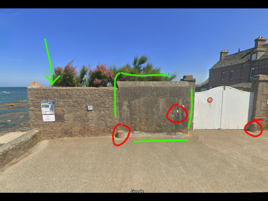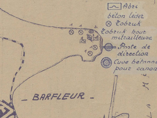 The German record says 2 x Vf58c & 2 x Unterstands. I have been shown one surviving Tobruk and that is set into the entrance of the house on the harbour side. There may be another at the rear? The earth bank has now been completely removed.
