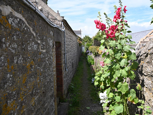 A wall covering the whole of the rear entrance and another stopping access to the sea.