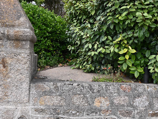 Right red circle, a stone to stop carriage wheels damaging the gate post.