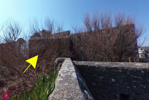 On this Google image, yellow arrow is the other side of the strengthened wall.