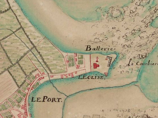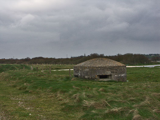 The north or left side of the harbour. There was a French defence called "The Batterie". This was a large large earth bank covering the seaward side. In this large mound two Tobruk's were built, one may have been a mortar. A fire control post (PDT). This PDT looks like it had a steel cupola? or was a concrete 'Pilz'. There was a second smaller PDT which may have been a small Luftwaffe detachment to keep an eye out for aircraft intruding in the area.