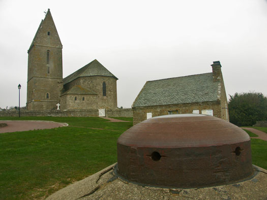 The church of La Pernelle, near Saint-Vaast-La-Hougue.