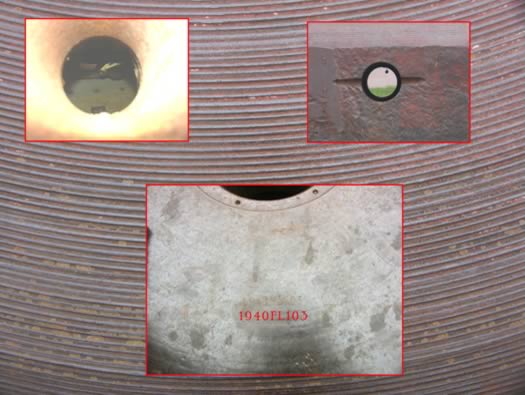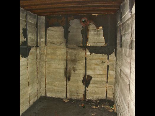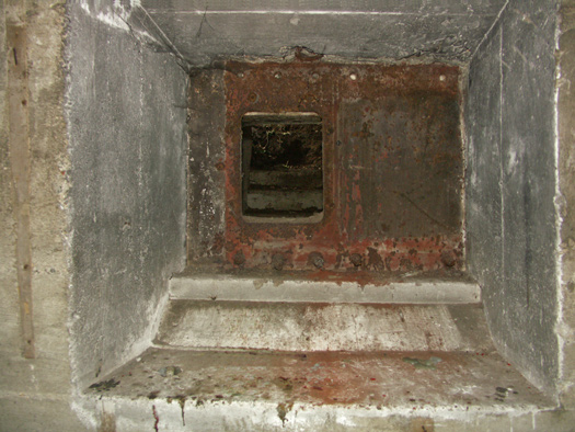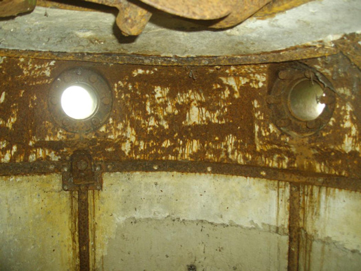Views inside the bunker showing two of the viewing holes and the bolts to hold the special eye fitting and monocular/binocular fitting