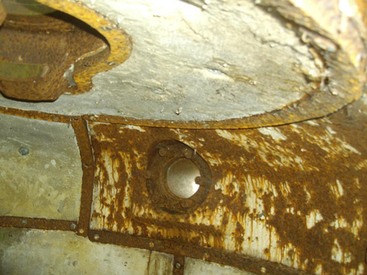 Note here the asbestos insulation. In winter it would be very cold and in summer extremely hot. Also you can see the periscope fitting in the centre.