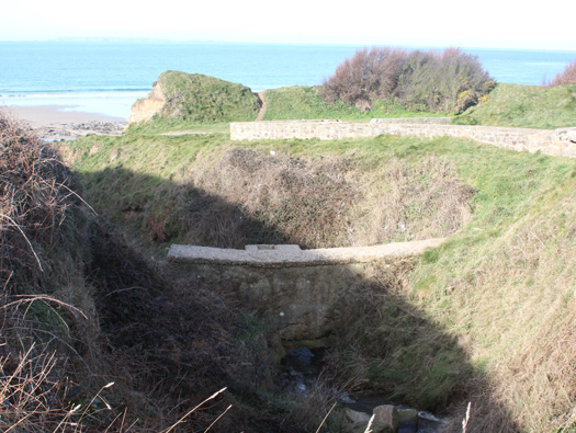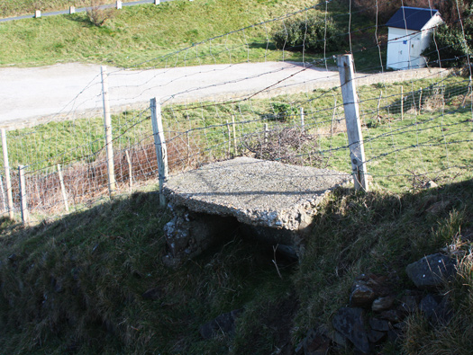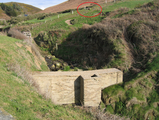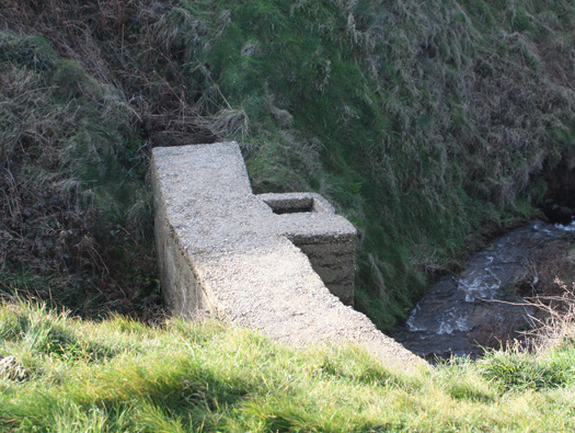 Slues wall in the stream bed. This may have been to stop a tank driving up the stream bed?