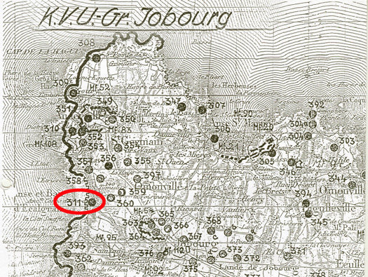 Map of the Wn's in and around the Cap de la Hague showing Wn311.
