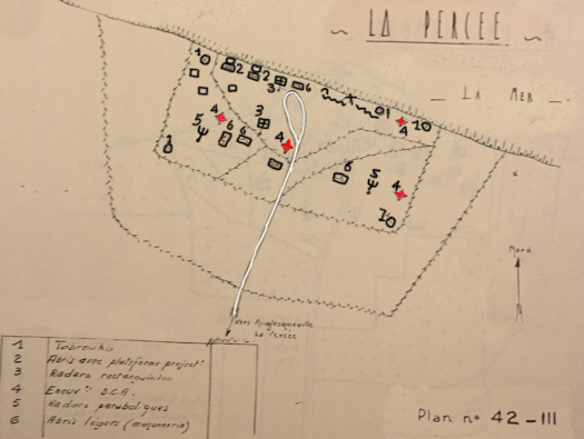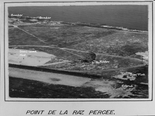 This is a picture of the point with the French semaphore in the centre, with huts and semi sunk shelters for the radar crews.