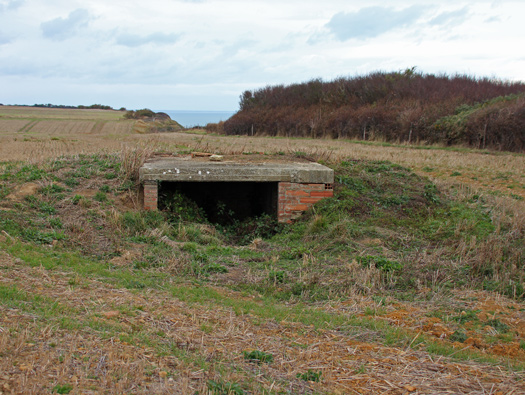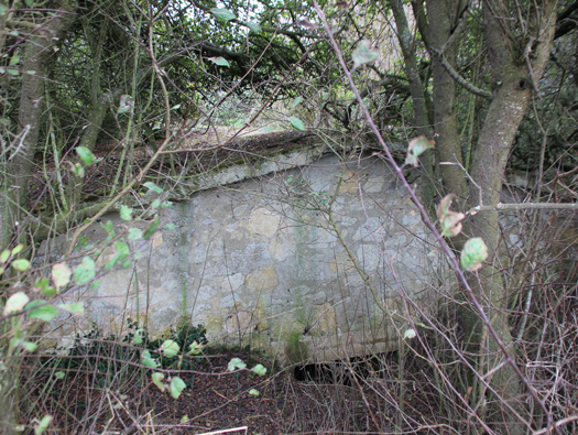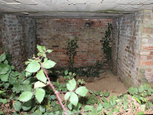 Inside showing the use of household brick and a concrete roof. This could be a garage for a search light?