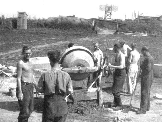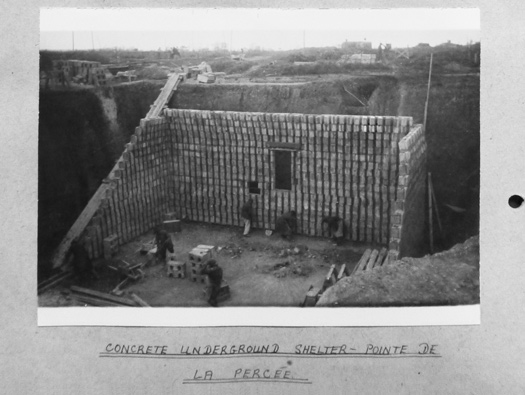 Small bunker under construction in Formstien. Two courses of brick, infill with steel reinforcement and concrete.
