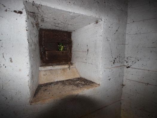 Rear entrance close combat defence embrasure.
