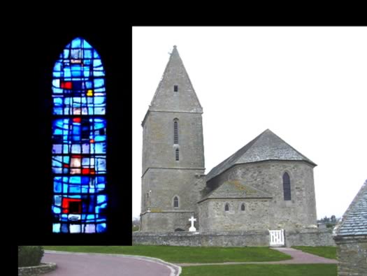 The church was hit by several shells and bombs during the lead up to D-day, D-day and later battles. HMS Erebus was the ship that fired on the Wn144 La Pernelle Observatoires batteries on D-day, she was a monitor with two 15" guns.