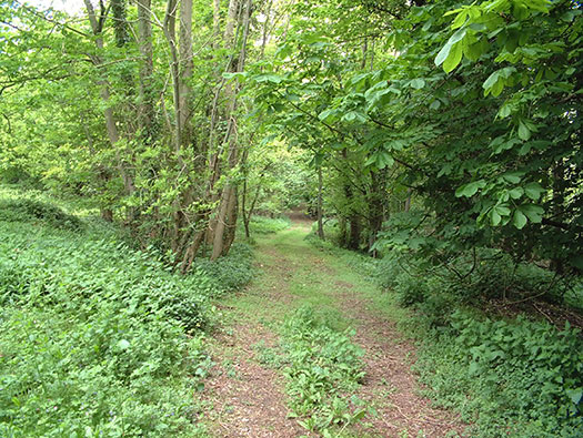 Just inside the entrance this track leads off to the left, a well made up track with spaces left and right which may have held huts?