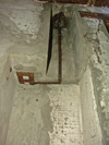 Above : original wiring on the wall. Above :aerial fitting in the entrance.