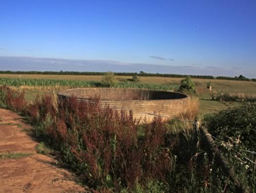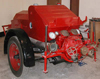 Emergency water supply. Using corrugated iron shuttering and filled with concrete. Above : a fire pump able to be towed to wherever its needed and can get water from these static water tanks.