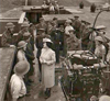 The predictor worked out the maths via cogs and gears and sent messages to the guns lining them up with their target. Above : Queen Elizabeth visiting an AA site with a predictor to here left. Note : the drain pipe to five five gallon drums set into the ground. Drinking water reservoirs??
