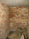 The porch is a blast wall covering the door. There would have been wooden benches or bunk beds around the wall.