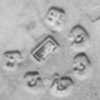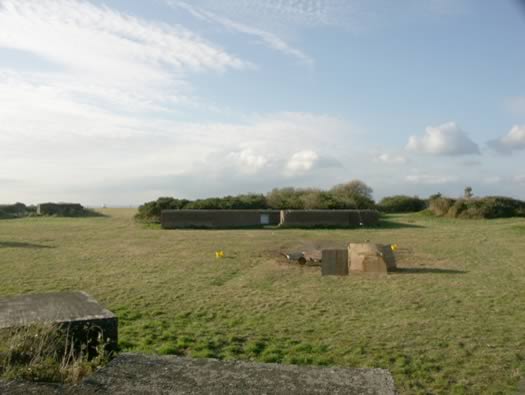 Above : aerial photo of Maker site in 1947 shows the six gun emplacements around a central command post just.
