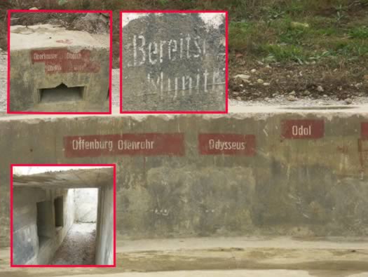 The names on the bunker walls, Odol, Odysseus, etc are sectors on the Above map of the beach area. Fire control see a target in the area on the beach at Odol (on the plan above) and the gun swings around to that point on the wall. Its a quick way to bring a gun onto its target.