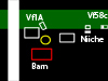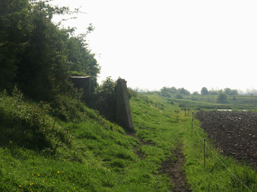 Plan of the HQ part of Wn99. Above : plan White : Wn99's bunkers/ buildings. Red : barn. Yellow : circular concrete thing?