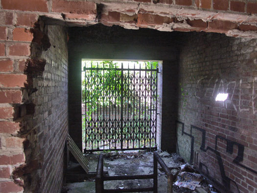 Main picture is the rear room with a very interesting gate, the same as found on old lifts and London underground stations. The plan showing the two blast walls, the doors and (gray) ducting in the floor.