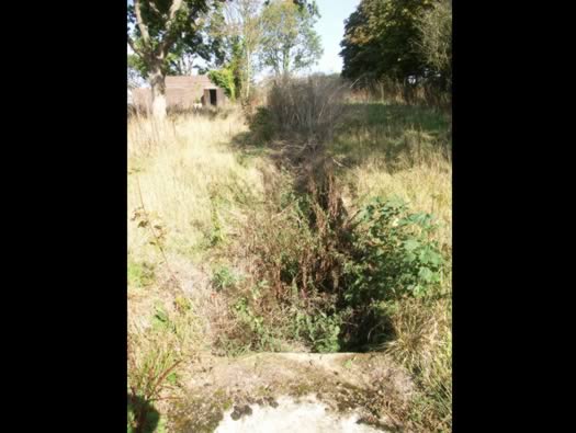 Cable or pipe ducting running through the site past building 1. This may have been the fuel pipes from tank no.1 on the hill behind.
