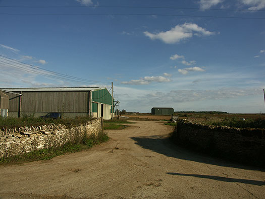 Entrance onto the airfield site where three hangars remain. What looks like a new Barn but really