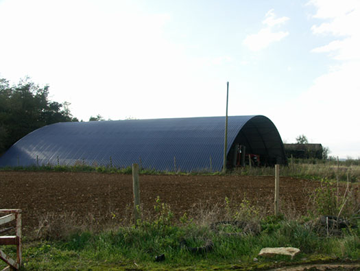 A double Blister hangar re-clad with modern materials. Above : the framework of a Blister hangar a very cheap alternative to a permanent hangar.