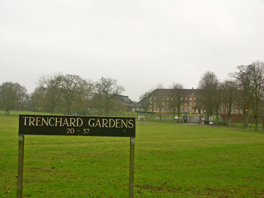 All around the west & south west side are many married quarters. The south western group are pre-war and still have camouflage paint on them.