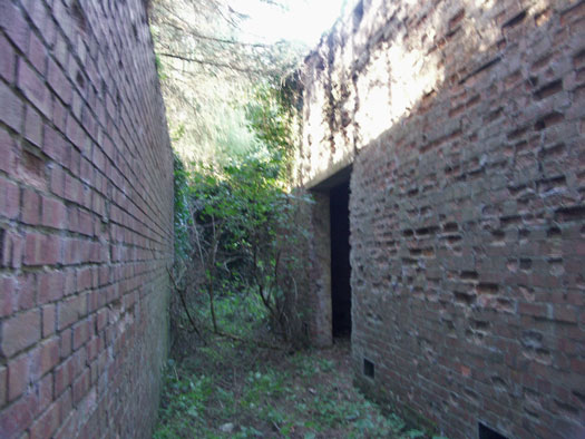 The wall on the left is a reinforced blast wall with the entrance into the set house on the right.