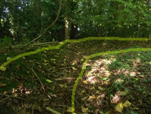 Close by is a small defence trench. Above: the Blacker bombard/spigot mortar fired a 20lb fin-stabilised high explosive mortar bomb propelled by black powder, and had an effective range of 100/450yds.