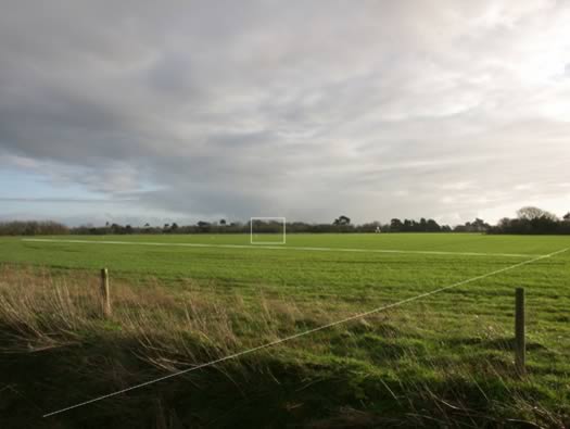 square is the civil hangar and the two white lines are the approximately