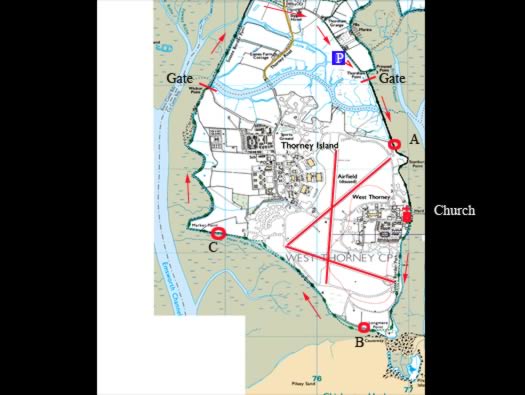 P is where we parked and followed the path around. A : is a gun position. Church : where there is a CWCG grave yard. B : Lookout? C : a gun position. Gate : allow access to the footpath.